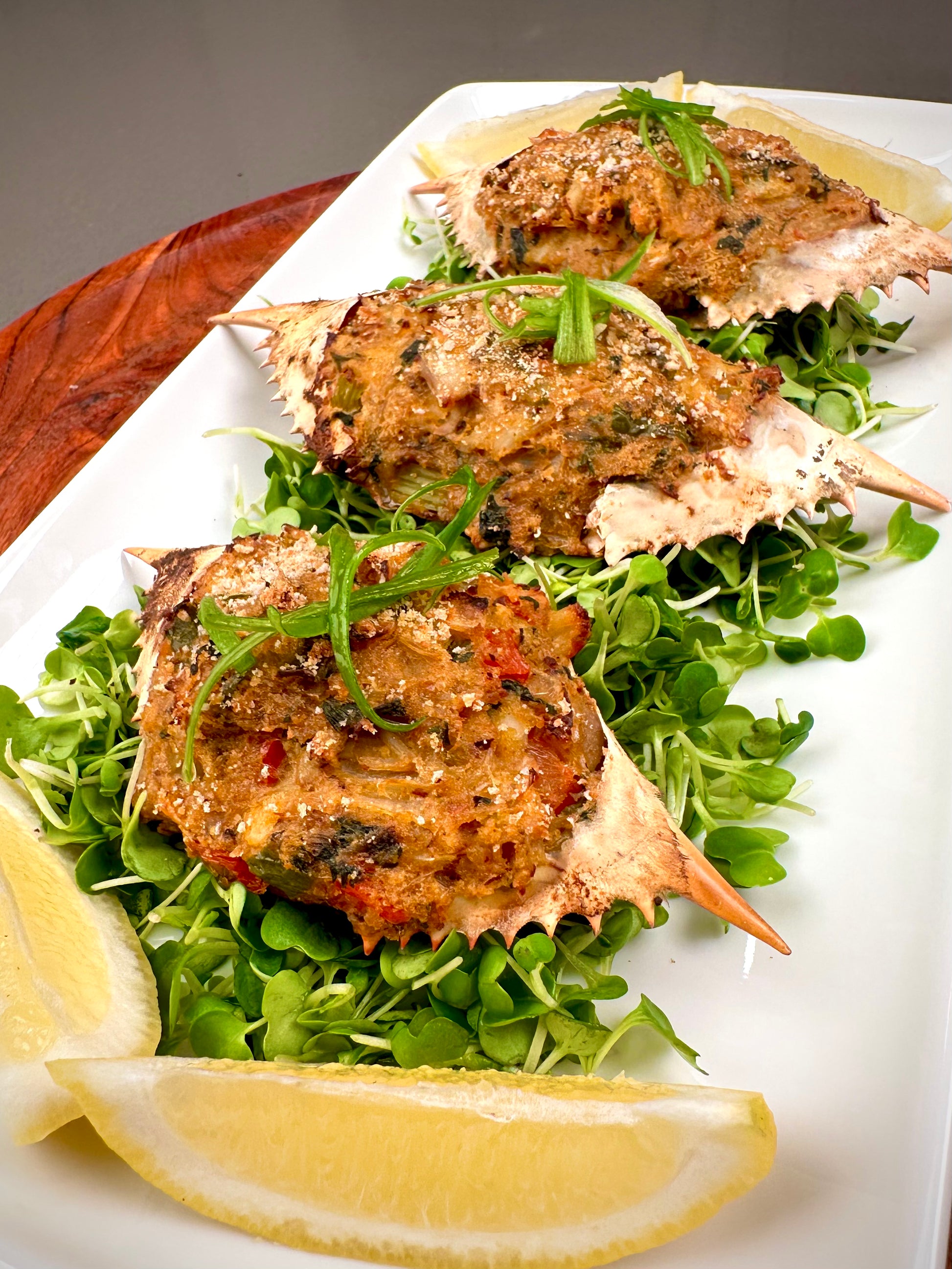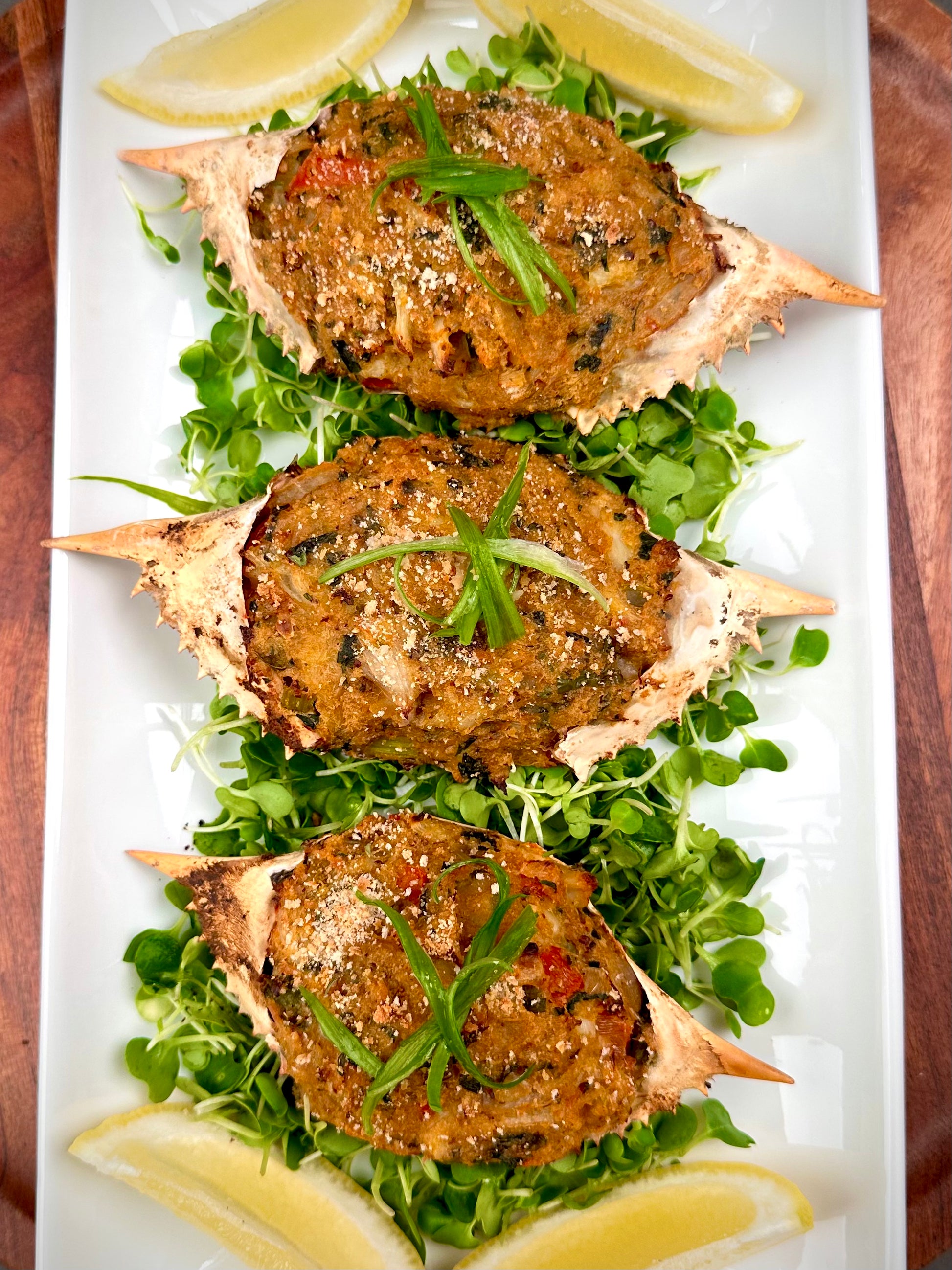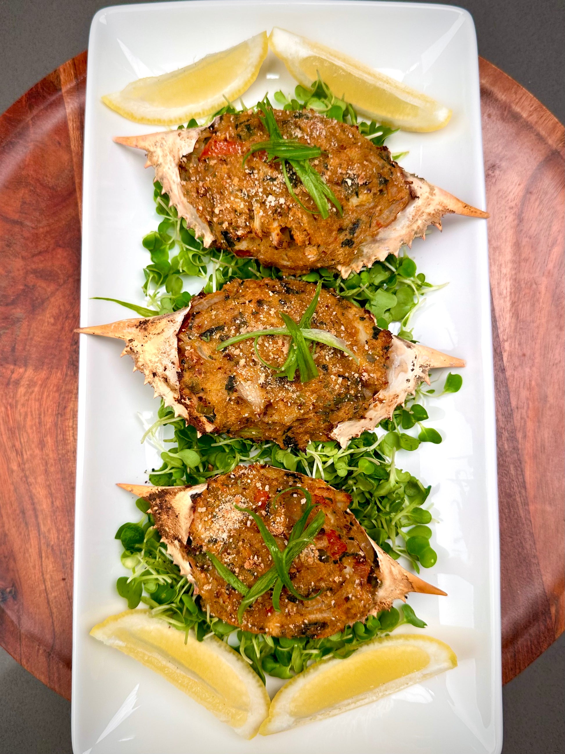 Packed with rich, seasoned crab meat and baked to golden perfection, these stuffed crabs are a true Southern delicacy. With a savory blend of herbs, spices, and fresh seasonings tucked into real crab shells, this dish delivers bold flavor and irresistible comfort in every bite. Perfect for impressing guests or treating yourself to something special.