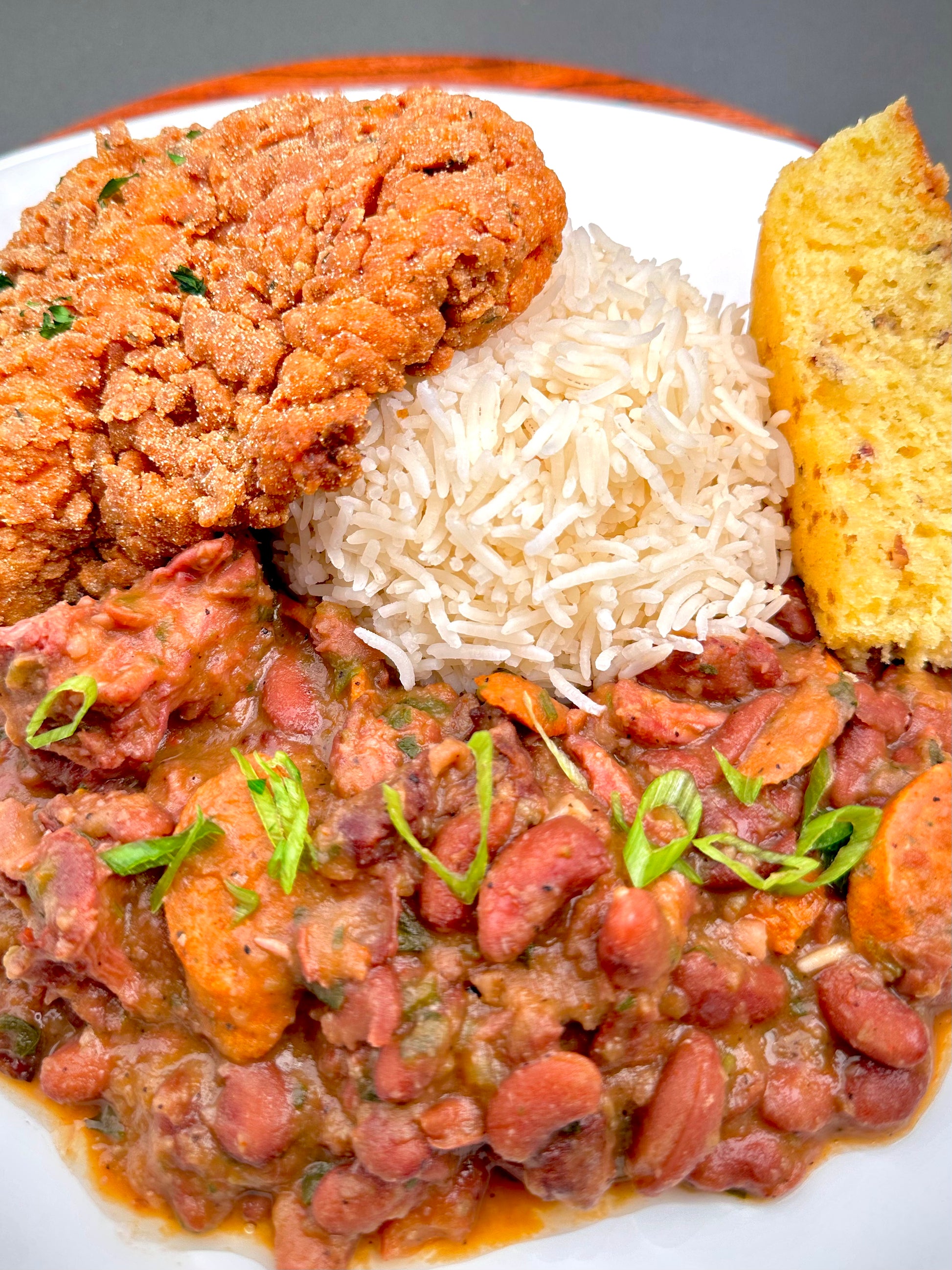 Bring the bold flavors of New Orleans cooking to your kitchen with this red beans recipe. Tender red kidney beans, simmered with smoked turkey necks and spicy andouille sausage, create a rich, satisfying dish. Paired with fresh herbs, spices, and served over fluffy white rice, it's a hearty meal that’s perfect for any occasion.